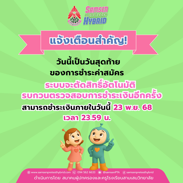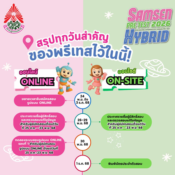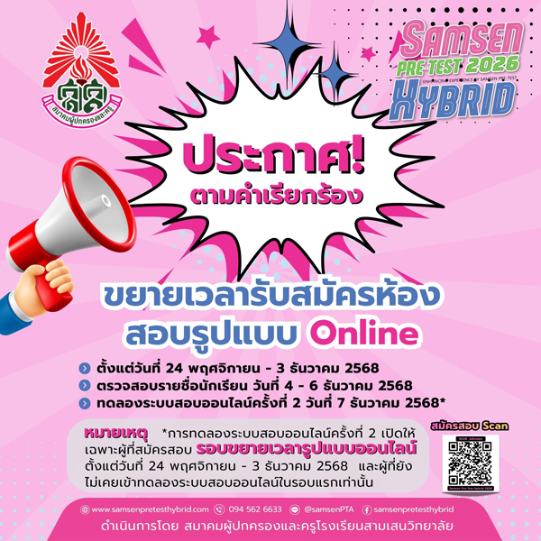 - เฉพาะรอบออนไลน์ ! ขยายเวลารับสมัคร Samsen Pre-Test Hybrid 2026 Nov 24, 2025