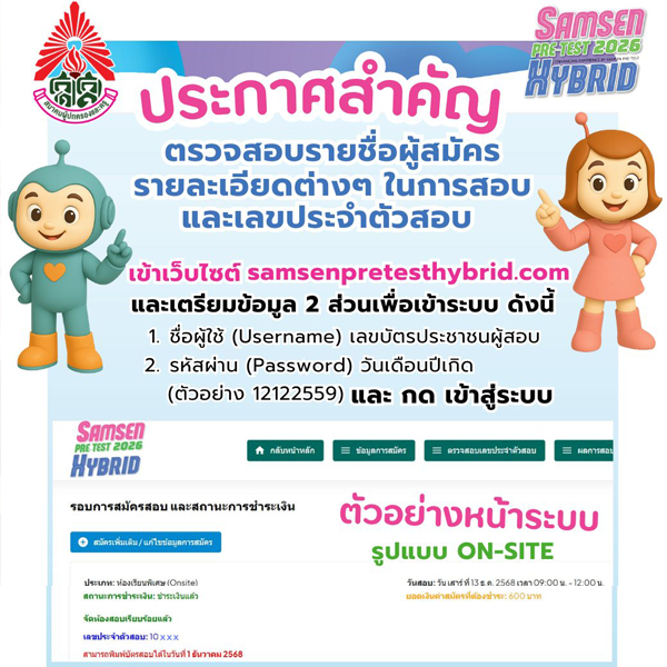 ศูนย์รวมข่าวสารประชาสัมพันธ์ โครงการทดสอบศักยภาพนักเรียน ระดับชั้นประถมศึกษา ปีที่ 4-6 Samsen Pre-Test Hybrid 2026