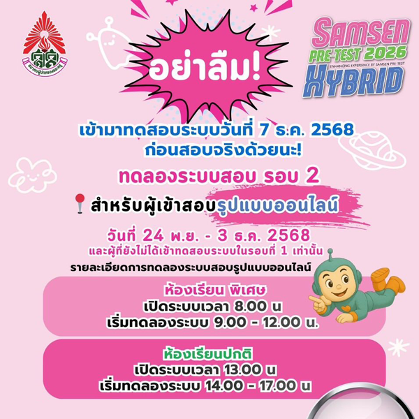 - โครงการ Samsen Pre-test Hybrid 2026 กำหนดการจัดขึ้นเมื่อไหร่ ? (2353) Sep 07, 2025