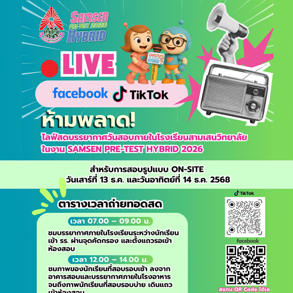 ข่าวสาร จำแนกประเภท Onsite และ Online โครงการ Samsen Pre-Test Hybrid 2026