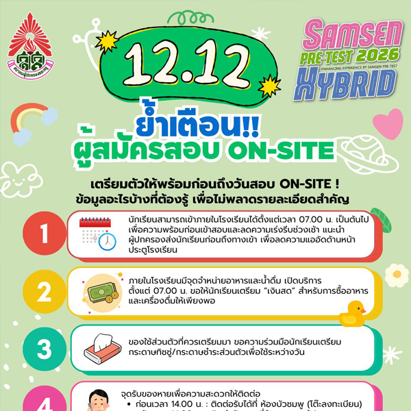 - เตรียมตัวให้พร้อม! ในการเข้าสอบรูปแบบ on-site Dec 09, 2025