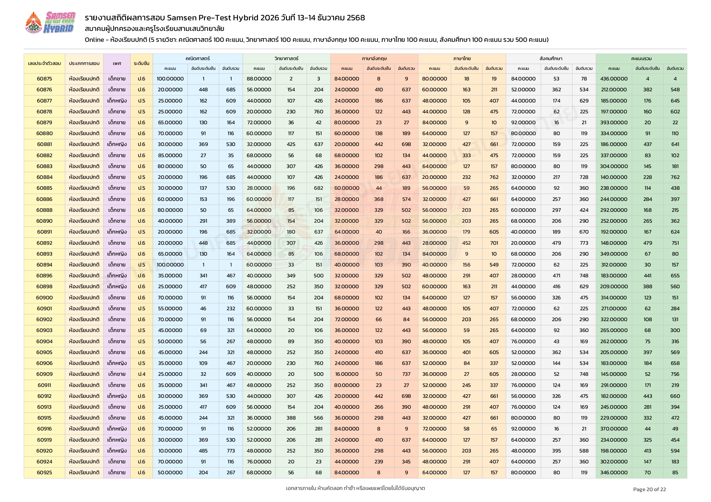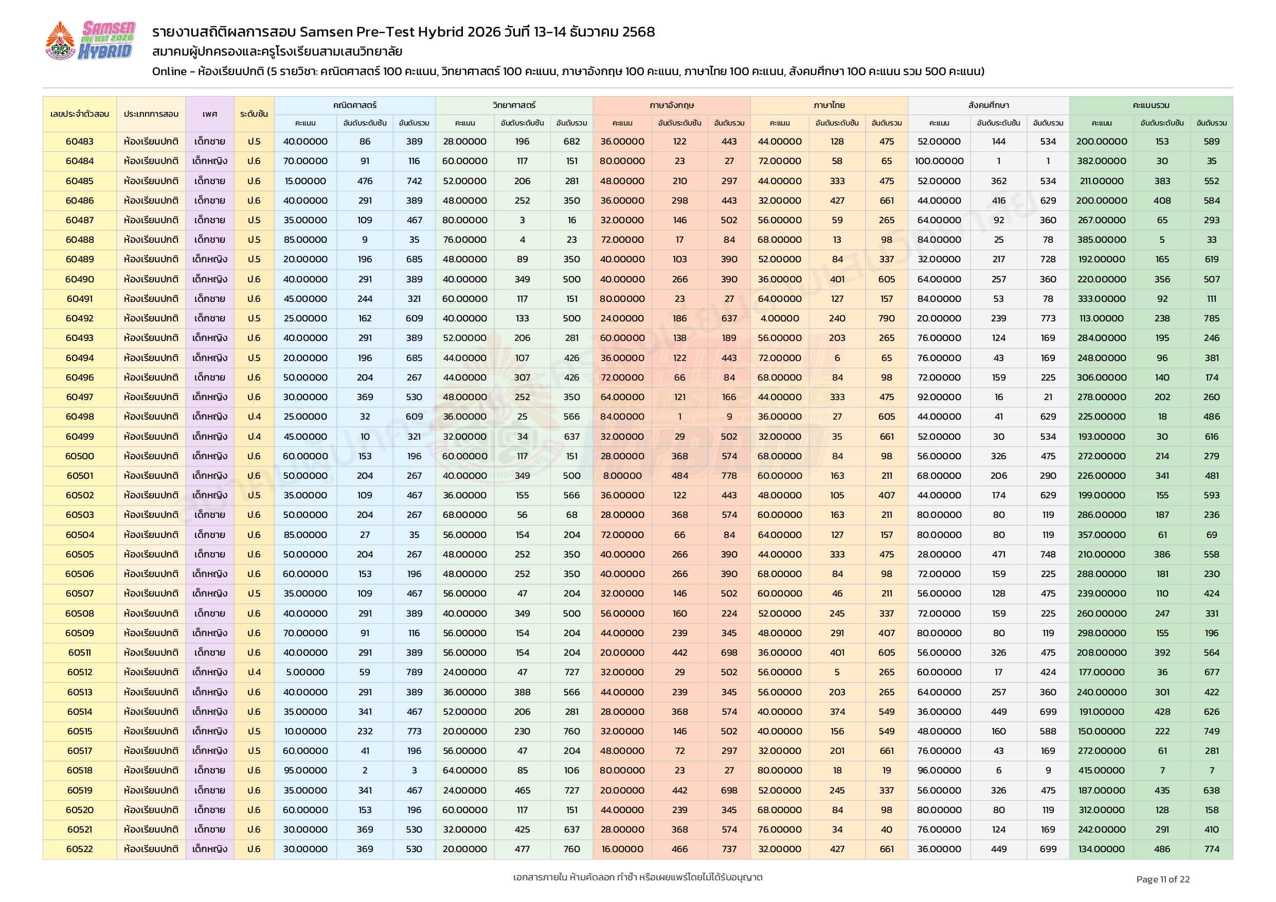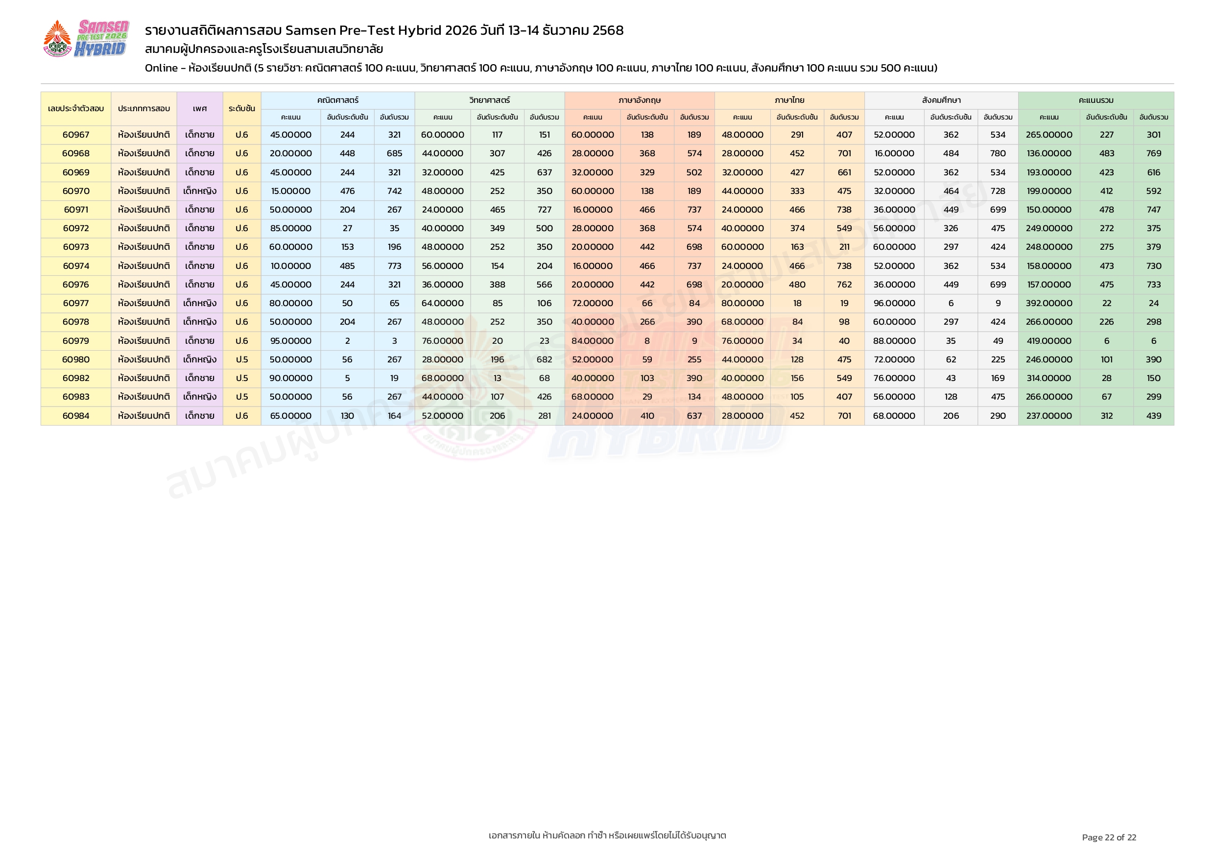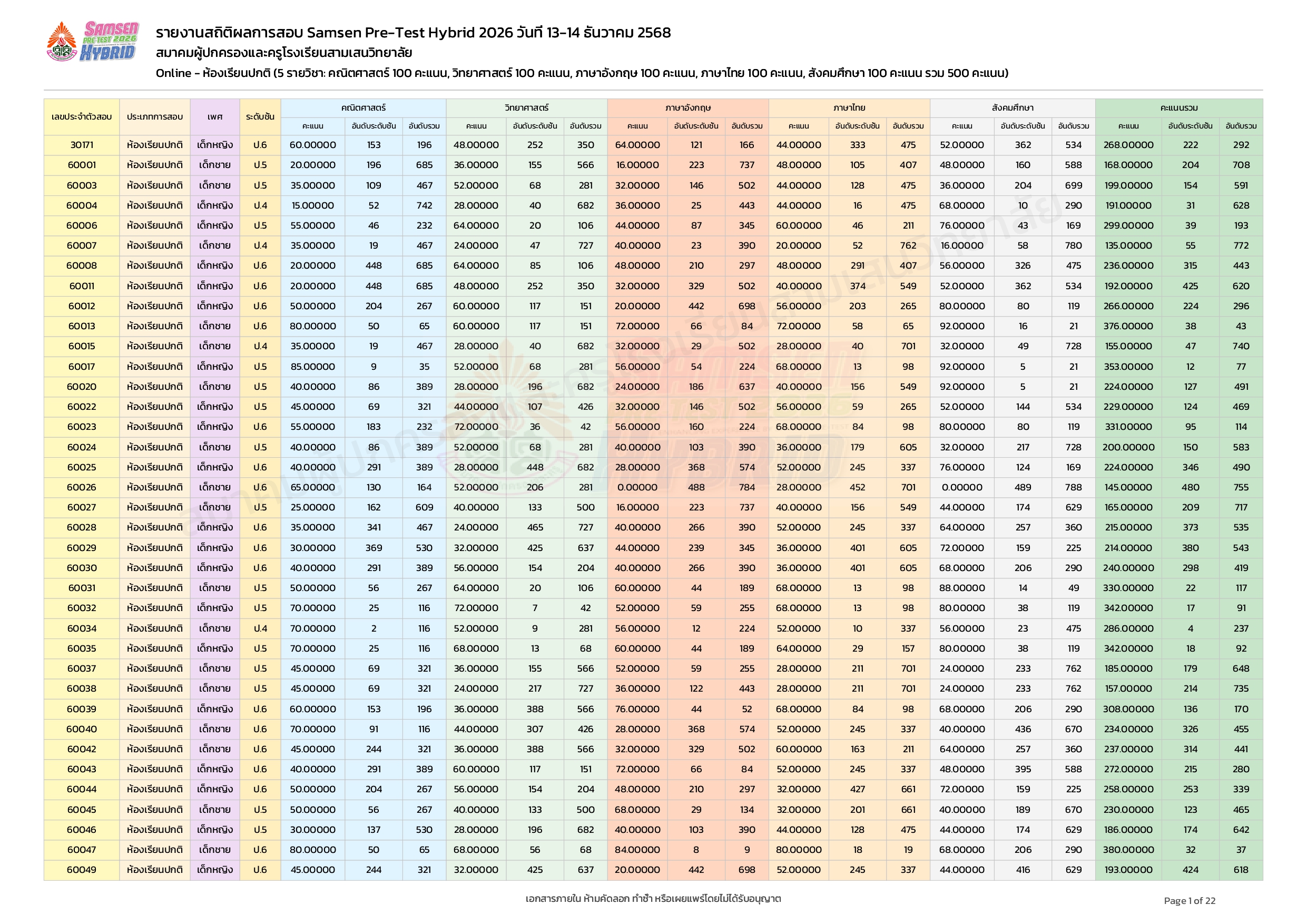 ❤️ สถิติคะแนนสอบ Samsen Pretest Hybrid 2026
