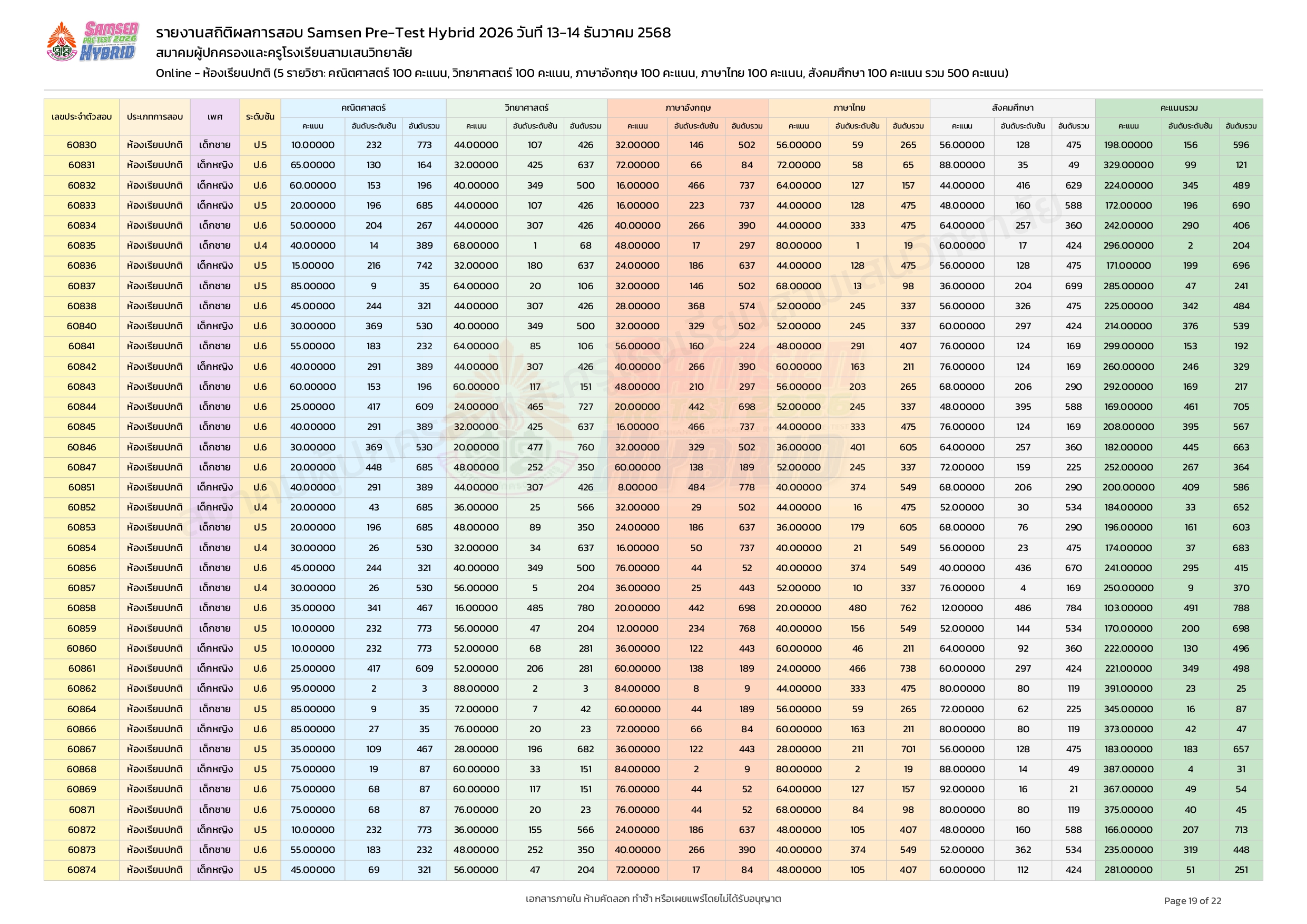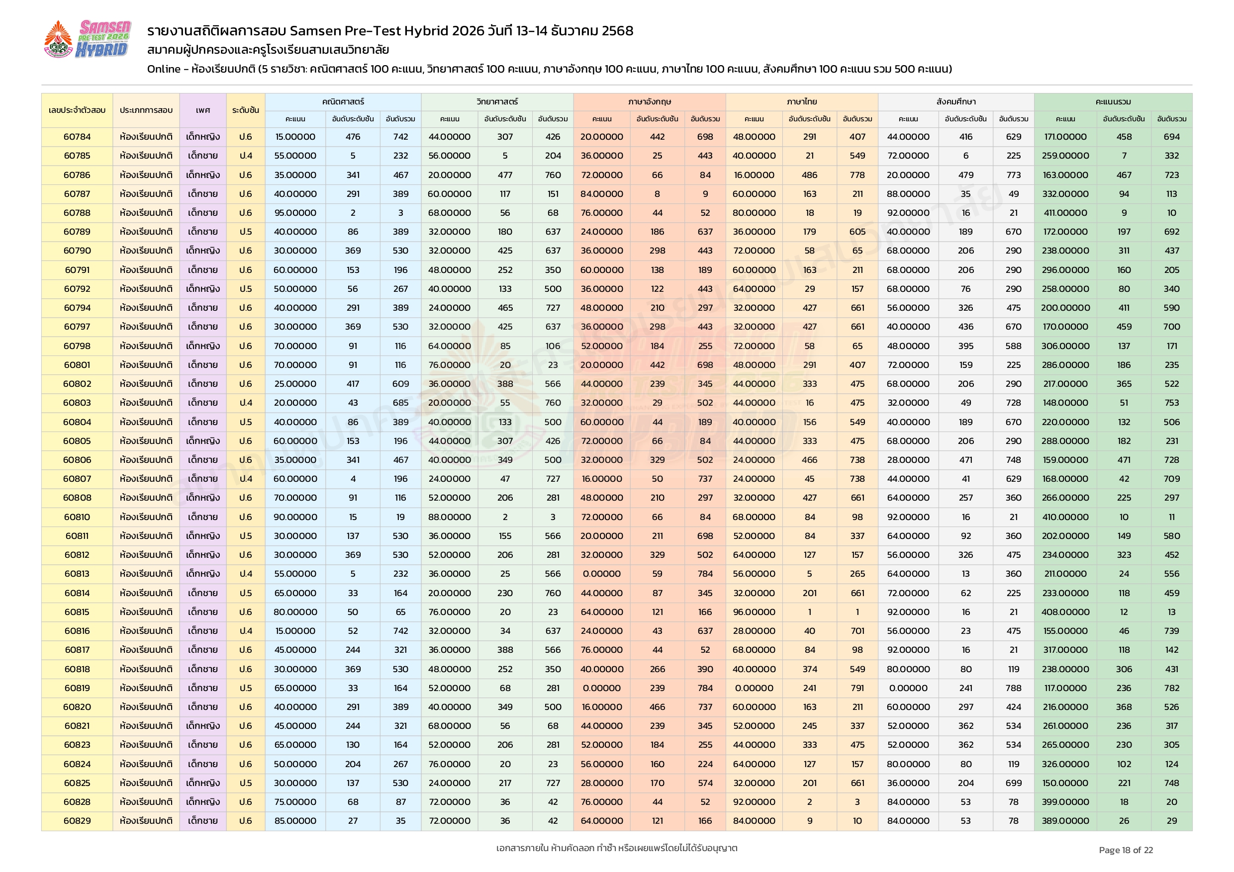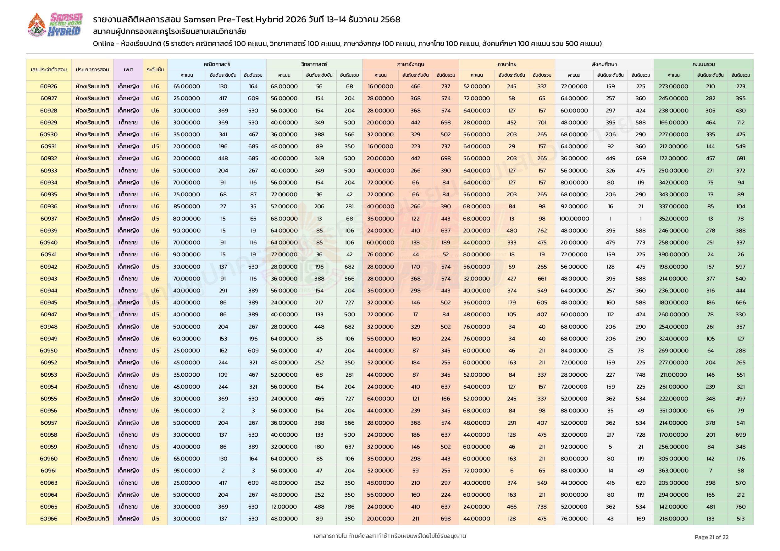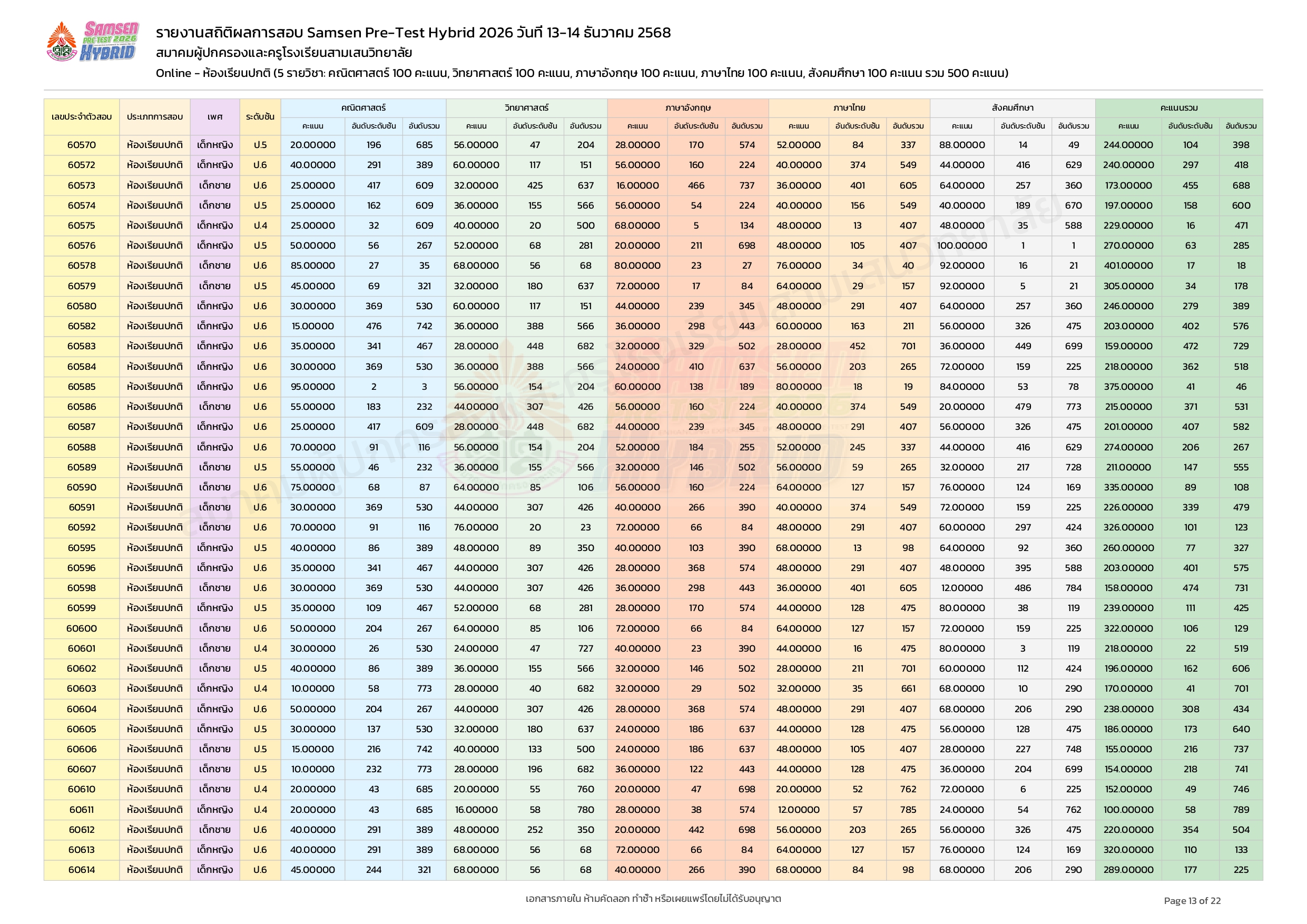 ❤️ สถิติคะแนนสอบ Samsen Pretest Hybrid 2026