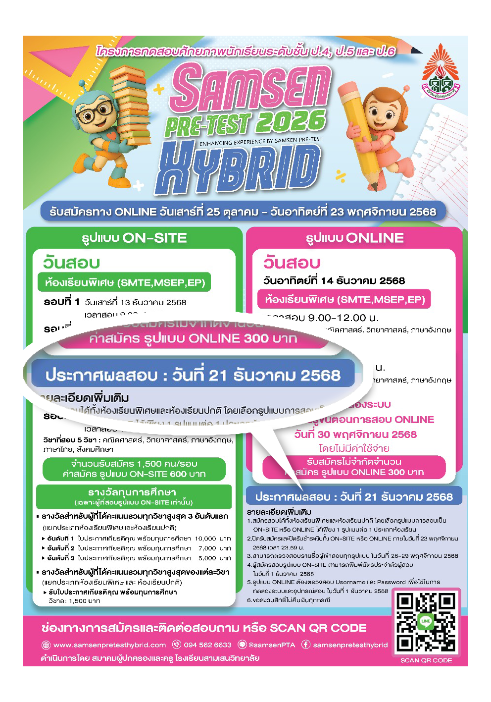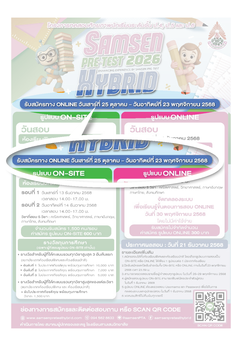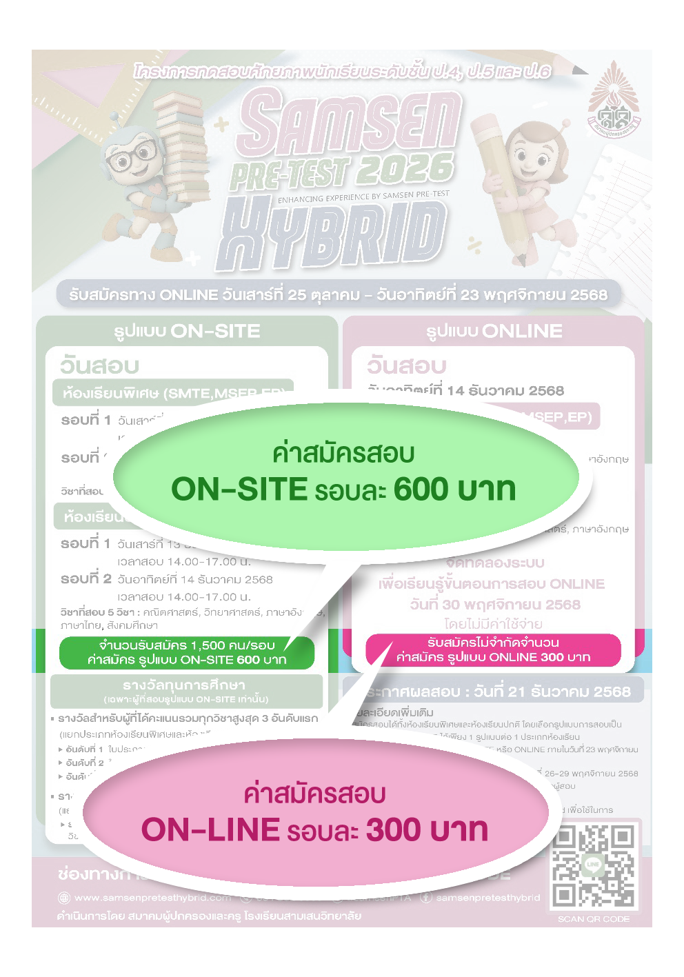 โครงการทดสอบศักยภาพนักเรียน ระดับชั้นประถมศึกษา ปีที่ 4-6 (SAMSEN Pre-Test Hybrid)