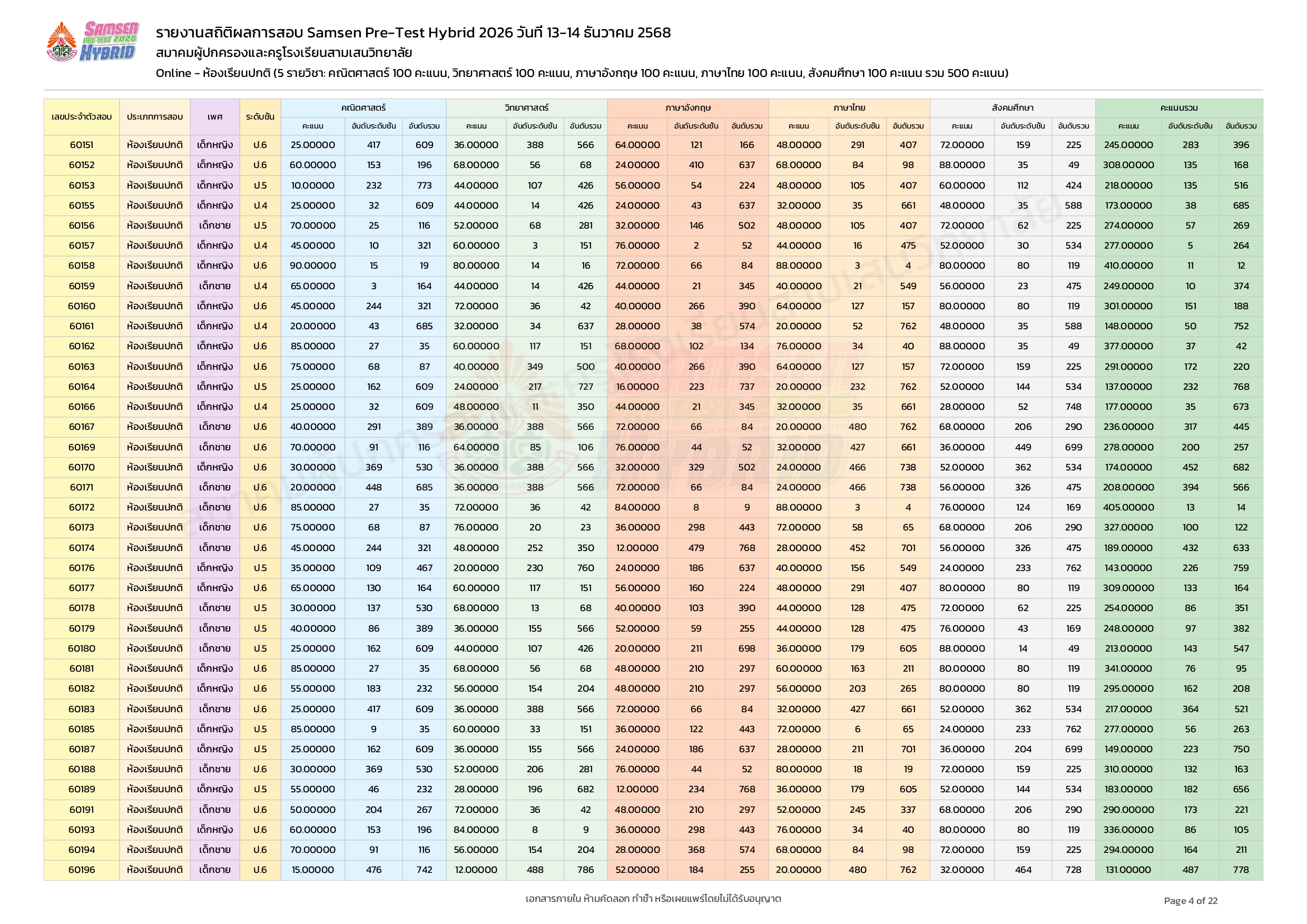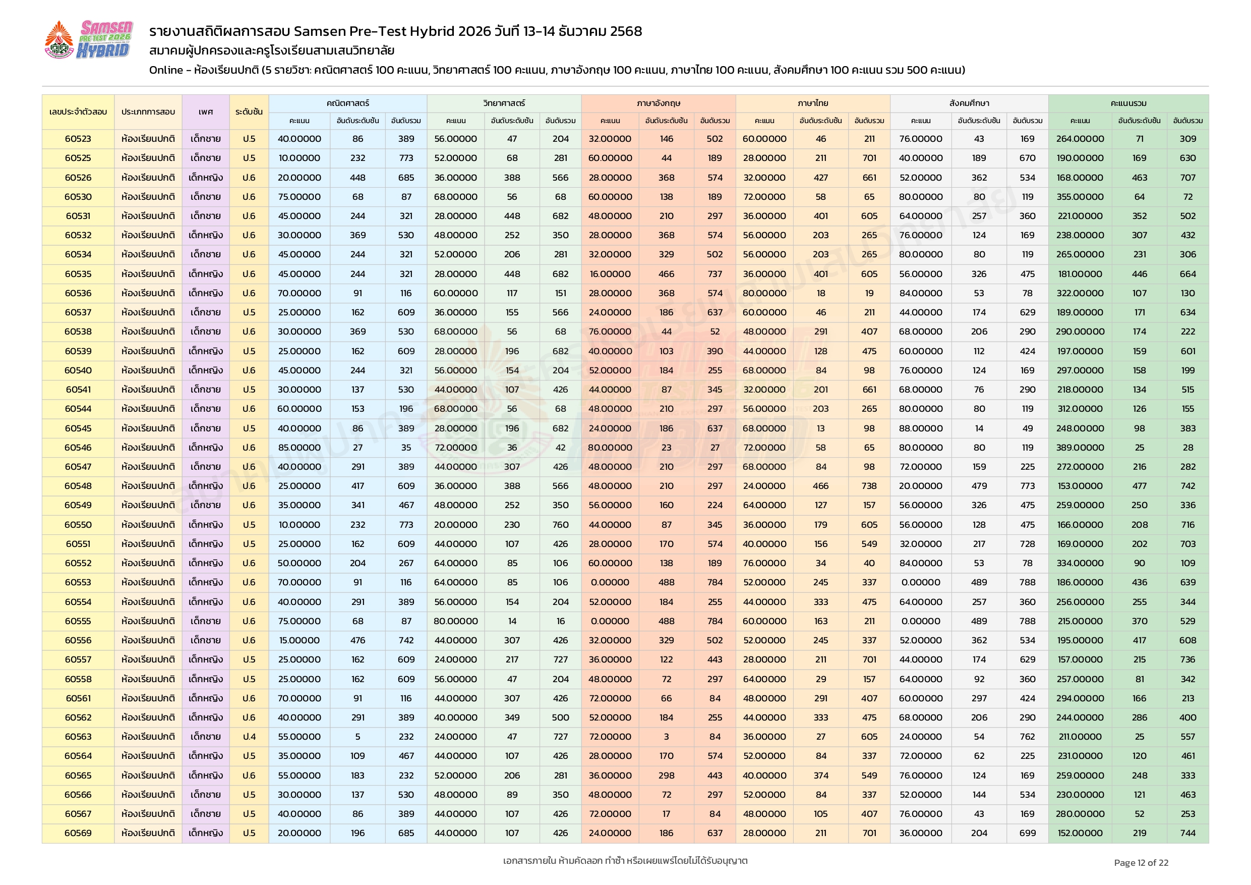 ❤️ สถิติคะแนนสอบ Samsen Pretest Hybrid 2026