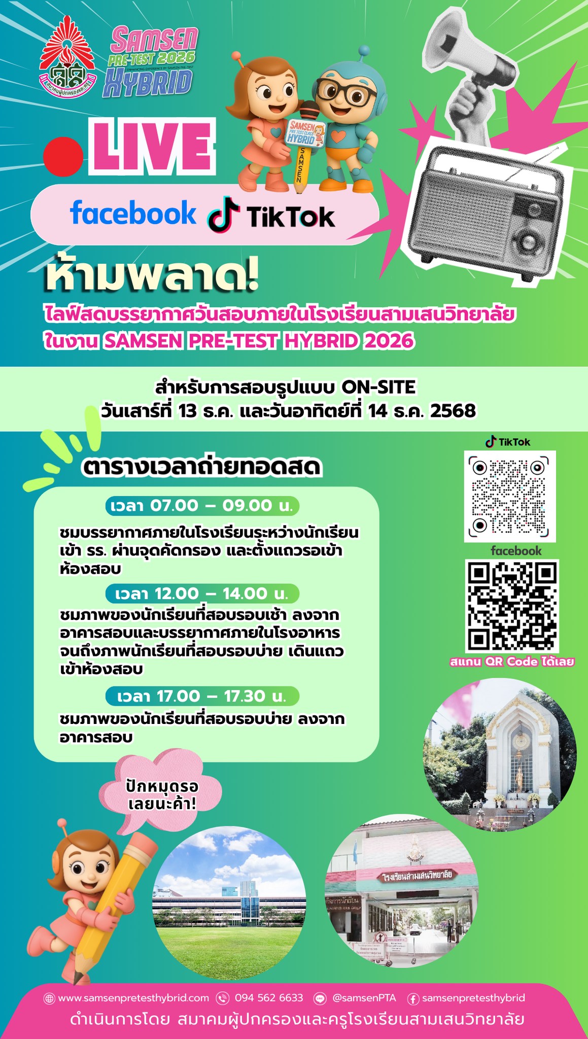 ไลฟ์สด บรรยากาศวันสอบภายในโรงเรียนสามเสนวิทยาลัย ในงาน SAMSEN PRE-TEST HYBRID 2026